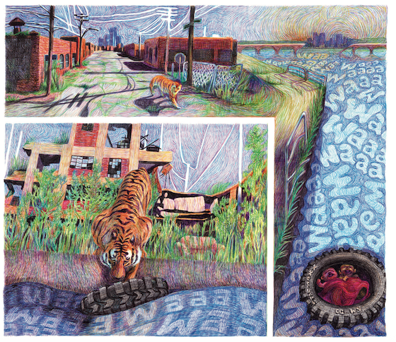 Impossible d’entendre Detroit Roma sans penser à Paris, Texas, une référence sans doute loin d’être anodine. Après René.e aux bois dormants, Grand Prix de la Critique ACBD 2022, Elene Usdin s’associe à son fils Boni pour livrer un récit d’une intensité rare : un road trip nourri de références cinématographiques et de failles intimes, dans une Amérique bien éloignée de son mythe…