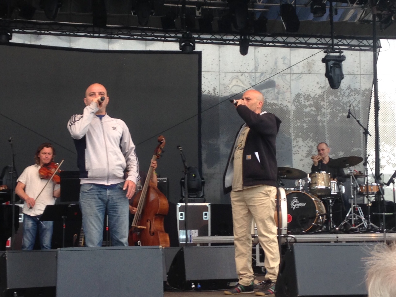 Bernard Combi quant à lui revisitera avec force et conviction « Sèm montanhòls » en duo avec Lionel Suarez. L’occasion aussi de découvrir sur un morceau un très très grand danseur auvergnat : Christian Frappa. L’accordéoniste de Bertholène a également tenu à inviter Claude Marti. « Je suis très content qu’il soit là, et tous les musiciens m’ont dit la même chose. » Il est vrai que Lionel Suarez a joué sur plusieurs albums de Marti et que le plaisir se voit sur scène, sur fond d’émotion et de puissance. Je pourrais parler aussi des frères Amokrane pour les tubes de Zebda (Motivés, « Y’a pas d’arrangement »), ou encore « L’Estaca » de Lluis Llach repris en oc. On y trouvera des clins d’œils à Massilia avec Gari Grèu, ou le Toulousain Art Mengo sur les traces d’Audiberti et Nougaro. Bref, du beau linge comme on dit. J’ai eu la chance d’assister hier soir à l’ultime répétition. Cette création a de l’étoffe, ça joue, ça surprend, interpelle. « L’occitan c’est un peu ma madeleine. La langue c’est pour moi un parcours, c’est du rythme. Même si je n’ai pas eu la chance de l’apprendre ».
