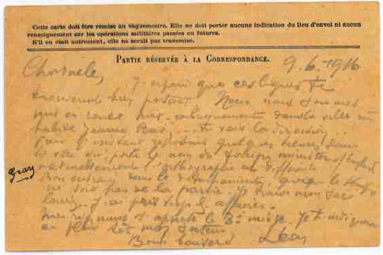 Si le moral paraît bon Léon montre encore son agacement dans sa lettre. Il est affecté par les remarques de quelques « camarades » sur ses 18 mois loin du front, après sa blessure en septembre 1914 à la Bataille de la Marne.