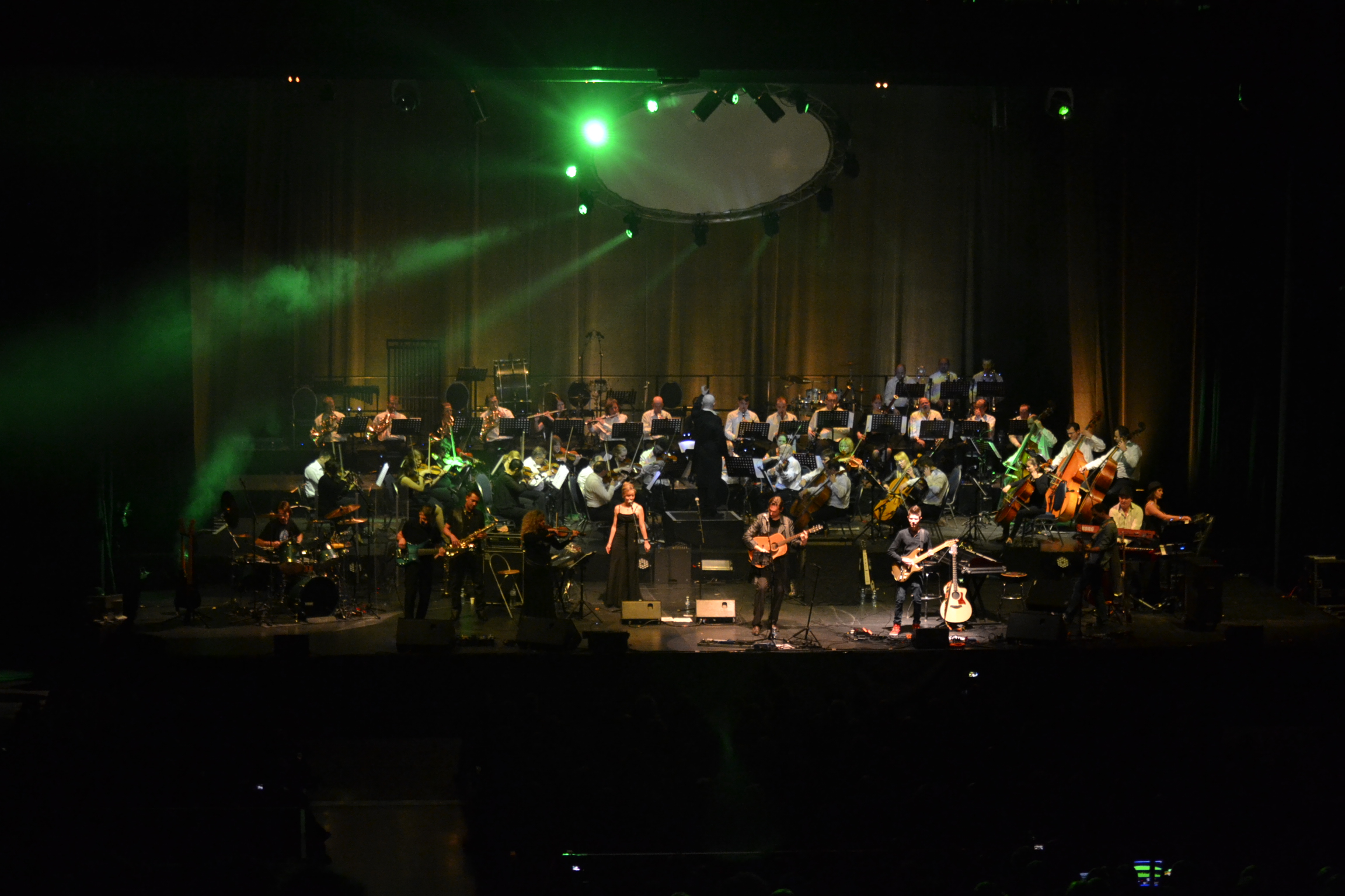 La présence du philharmonique donne une dimension incroyable au spectacle : « L’effet d’un boeing 747 au décollage ! » me dira Max, le chanteur, à la fin du concert. Et quand on sait qu’ils n’ont répété tous ensemble que quelques heures avant d’entrer en scène, tout ce que l’on peut faire, c’est siffler d’admiration et rester totalement baba devant ce qu’ils ont donné au public ce soir-là.