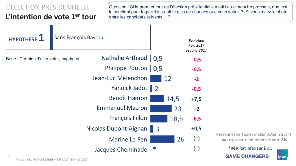 L’Ipsos a testé deux configurations, avec ou sans François Bayrou.