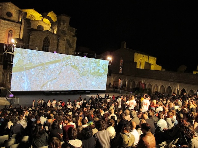 Une longue file d’attente court le long des murs du Campo Santo. Des Perpignanais, des touristes bardés d’appareils photos, attendent la première soirée de projection du 24e festival Visa pour l’image. Les vigiles tentent de faire entrer rapidement les visiteurs pour gagner du temps, le programme de la soirée est chargé : réviser l’actualité capturée il y a quelques mois par l’objectif des photojournalistes. Curieuse impression de revivre des évènements très anciens: la Tunisie, pleine de promesses, Khadafi et Nicolas Sarkozy posant ensemble, le visage de l’ancien dictateur libyen sous un drap mortuaire…
