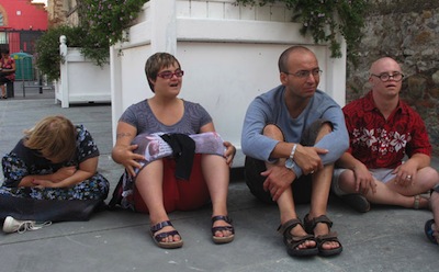 Patricia, à l’extrême droite de la photo de groupe, qui ne sait plus son âge, retient l’image d’une famille. « Le papa et la maman dormaient avec leur fille, j’ai trouvé ça touchant ». Le groupe ne verra pas d’autres expositions aujourd’hui. Il est l’heure d’aller manger. Même pour Visa, pas question de bouleverser le rythme du groupe.